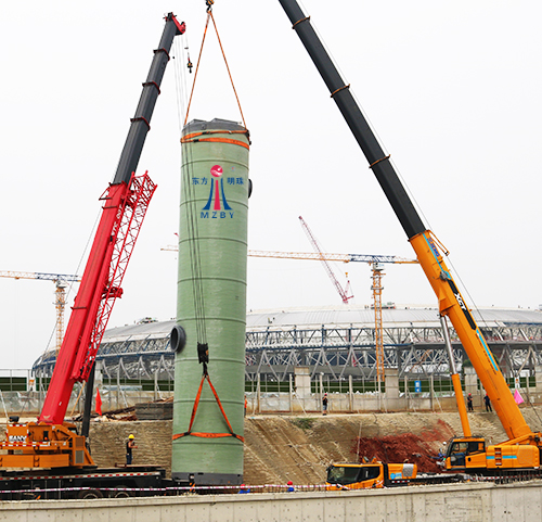 玻璃鋼一體化預制泵站的容積通過計算有效容積,底部泵坑的流體動力學水力模型,新型筒體材質的應用,內部管配件包括粉碎性格柵的集成化安裝等來實現(xiàn)??梢詫㈩A制泵站的體積控制在傳統(tǒng)混凝土泵站的1/3甚至更小。由此大大縮小了預制泵站的尺寸,節(jié)約了土建成本,方便運輸和安裝。